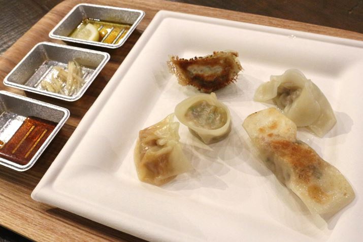 各5種の餃子とビールを、おすすめの組み合わせでいただきます。餃子とビールの相性のよさは言うまでもありませんが、「最高の組み合わせて食べている」という気持ちが、いつも以上においしく感じさせてくれます。ビールはあまり飲まないほうですが、並べて飲み比べをすると差がわかっておもしろい!