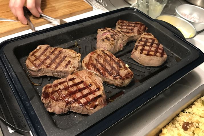分厚いお肉をおいしく焼けるのが「ホームバーベキュー」の最大の特徴。適度に脂が落ちるため、あっさり食べられます(画像は発売前の発表会より)