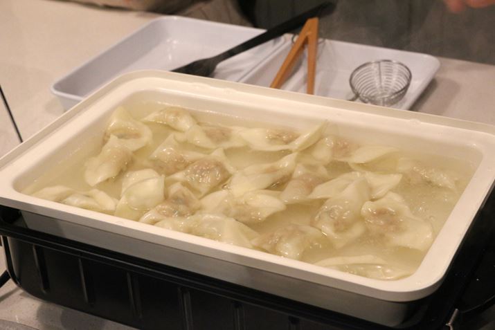 「セラミックスチーム深鍋」では水餃子。しっかり深さがあるので、20個以上の餃子を1度に茹でることができます