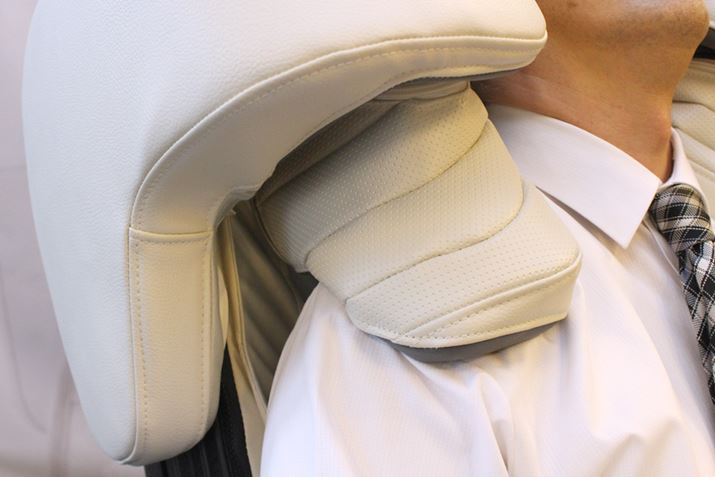 見た目はいかつい肩メカですが、体験してみると、その感触は強すぎなくてイイ具合です。まるで人の手で“つかみもみ”をされているかのような心地よさ