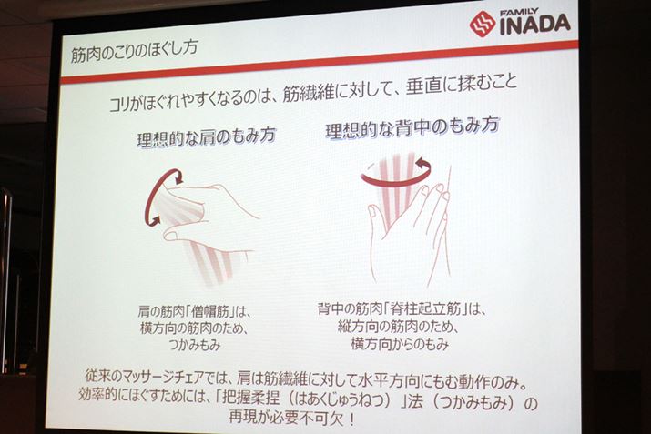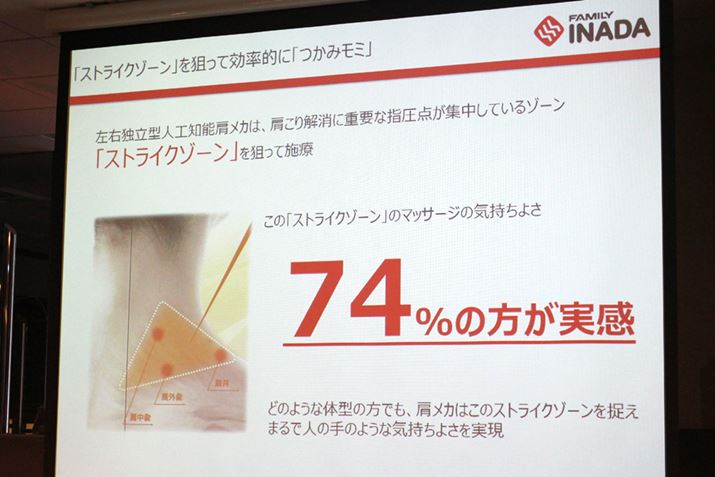 こちらが新技術「肩メカ」搭載部。まるで人の手でもまれているような心地よさを追求しています。詳細は後ほど!