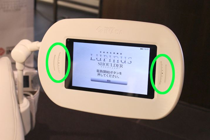 本体に備えるディスプレイから、ユーザー登録やマッサージモードの選択などの操作を行います。ちなみに、緑マルの部分に音声認識マイクとスピーカーを搭載していて、タッチ操作のほかに“音声操作”が行えるようになったのもポイント。ルピナスショルダーはAndroid 6.0ベースのアプリケーションを搭載しており、音声認識機能もAndroid標準のものをベースに開発された、かなり認識精度の高いものとなっています