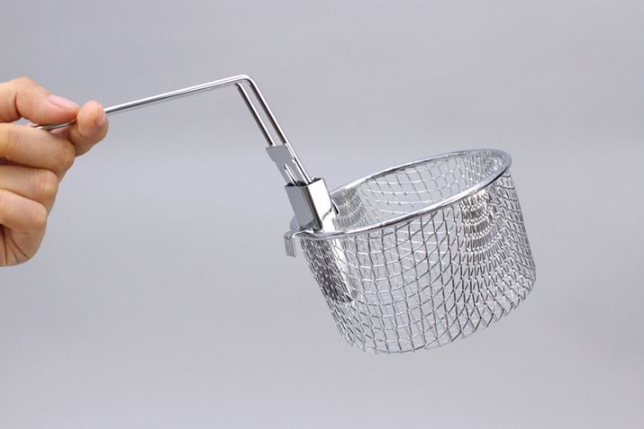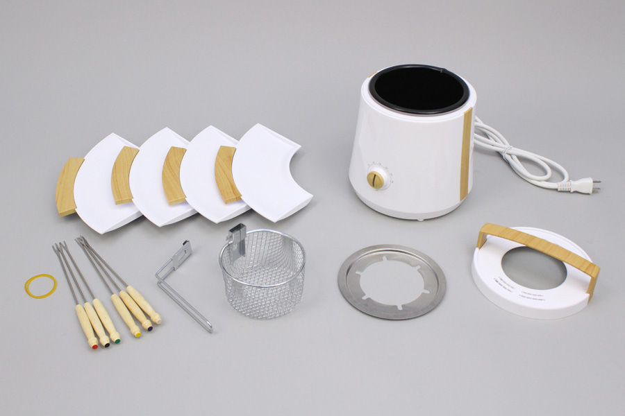電気オイルフライヤーとして使うときのため、揚げもの用バスケットも同梱。後述のフォンデュ用串といい、こういう便利なパーツがセットになっているのがうれしいところ
