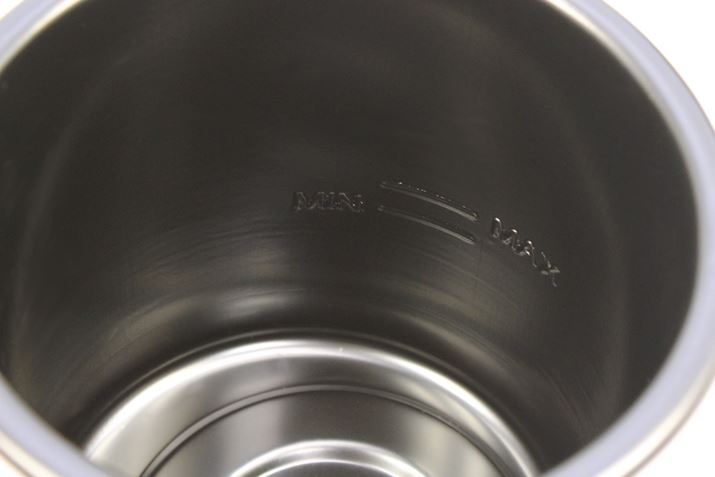 内部はPP樹脂製の鍋になっていて、オイルやチーズソースなどを注ぐ際の目盛り線(「MAX」と「MIN」)が付いています