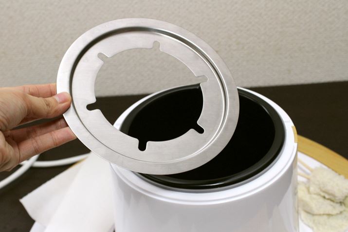 もちろん、本製品はオイルフライヤーとしてもばっちり使えます。電気オイルフライヤーの魅力は、火を使わないので危なくないうえ、電源さえあれば食卓上でも手軽に揚げものができるところですよね。しかも本製品に付属する4枚のお皿は、揚げる材料を置いておくのにもぴったり。こんなところでも使い勝手がイイのです。