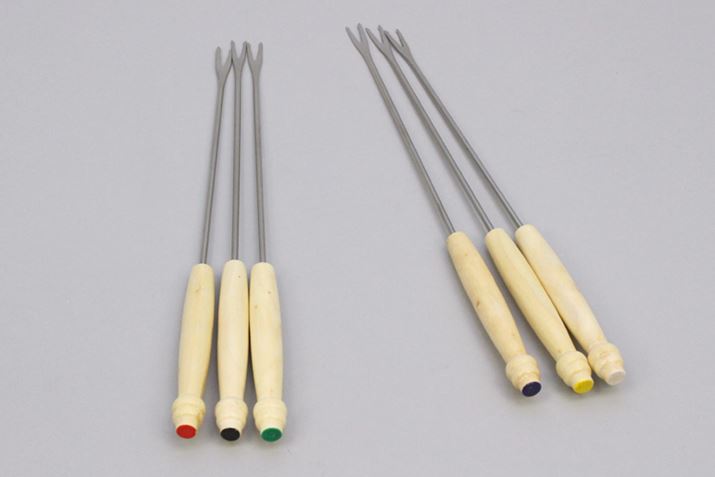 これが同梱されている串。持ち手の裏側にカラフルな色が付いているのがかわいいし、複数人でフォンデュするときに誰の串かわかりやすくてイイですね