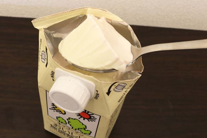 牛乳や豆乳など、パックにそのまま種菌となるヨーグルトを入れ、かき混ぜて「VYG-11」にセットするだけでヨーグルトが完成します。もちろん、容器に中身を移し替えてもOK。