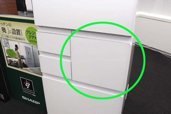 ここで注目したいのは、GXシリーズのほうは“電動のフレンチドア”を備えていること。定格内容積551Lの「SJ-GX55D」と、定格内容積502Lの「SJ-GX50D」をラインアップしており、それぞれWXシリーズと共通の電動回転機構を採用し、ドアの矢印に触れると自動で開閉することができるようになっています。