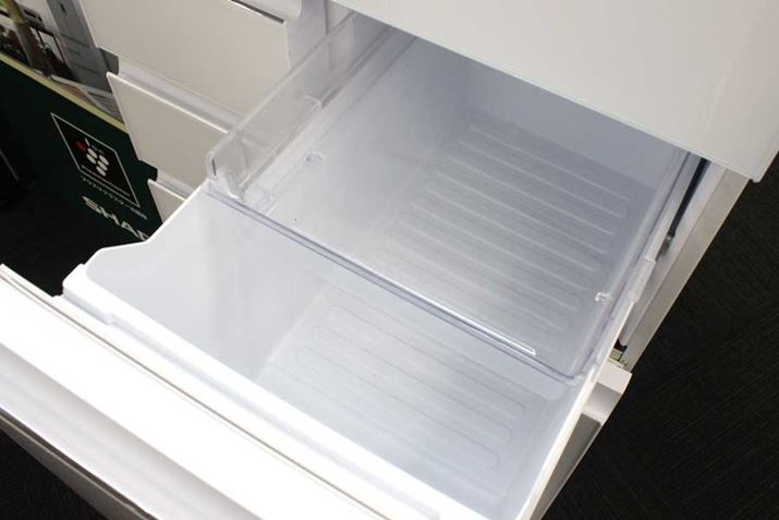 新モデルでは、中段に野菜室を設けていることも特徴です。隣にある製氷機と、下段にある冷凍室で、野菜室が囲まれることによって雪下に近い低音高湿環境を再現する「雪下シャキット野菜室」