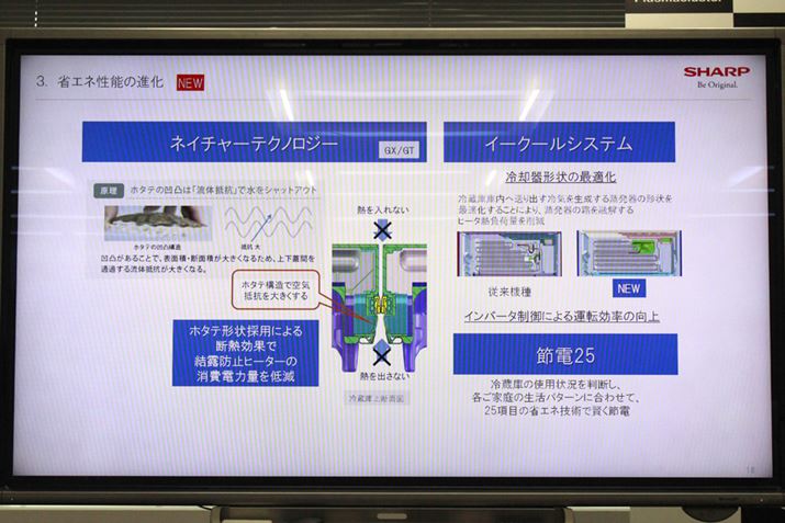 さらに、「冷蔵庫のドアに液晶ディスプレイを搭載するスタイル」が今回復活したのもポイントです。かつてシャープでは液晶付きの冷蔵庫を開発していた時代があったのですが、2003年以降はストップしていました。当時は、液晶による設定機能を設けても、そこまで操作する機能が多いわけでもなく、冷蔵庫を1度設置したらそのままの設定で使用する人が多数だったので、不必要な機能として省略されたそうです。