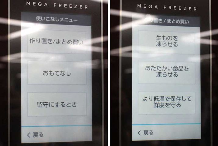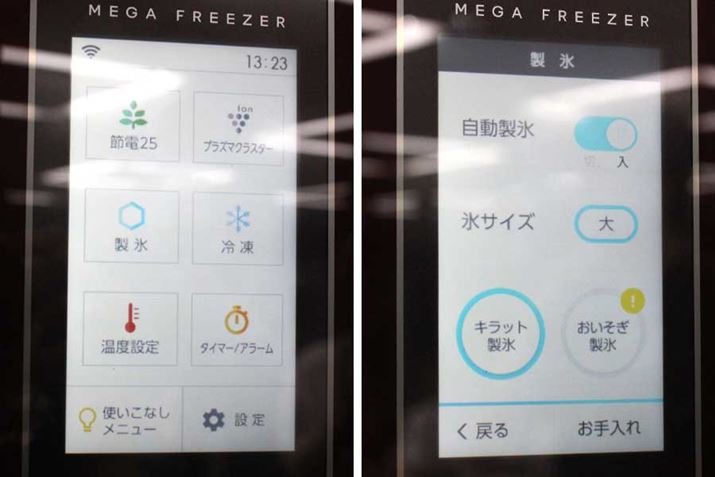 それが近年になって、複数の冷凍モードや、製氷機能、プラズマクラスターのオン/オフ設定など、冷蔵庫自体が持つ機能が増えてきました。そこで、それらを一括して操作できるよう、14年ぶりに液晶ディスプレイが復活したというわけです。実際に、節電モードは状況にあわせてオン/オフしたい機能ですし、製氷機の自動洗浄機能などはその都度操作をしなくてはなりません。液晶から指1本でコントロールできることで、冷蔵庫の持つ最新機能がとても楽チンに使えるようになっています。