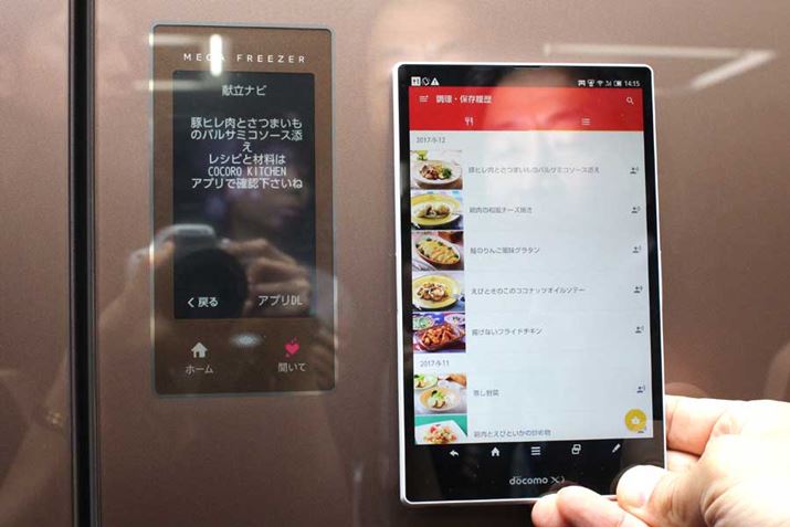 「COCORO KITCHEN」は、ウォーターオーブン「ヘルシオ」などシャープの調理家電と連携できるサービス。ユーザーIDを紐づければ、冷蔵庫の液晶で選択した料理レシピがスマートフォンの専用アプリにも自動共有されるので、その日の買い物に役立てることができます。今回発表の6機種の中でクラウド連携に対応するのはGXシリーズ2機種のみ(“電動どっちもドア”のWXシリーズはクラウド連携非対応)