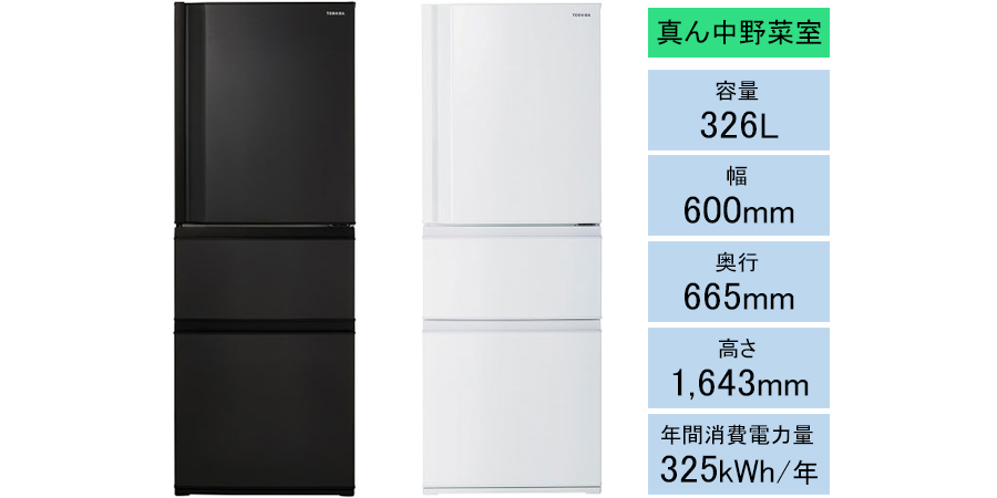 というように選ぶと使いやすいでしょう。なお、構造上、「真ん中冷凍室」モデルのほうが省エネ性能が高いうえに、同じくらいの本体サイズでも「真ん中野菜室」モデルより容量が大きいことがほとんどです。