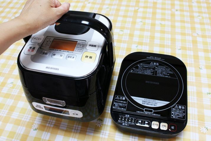 しかし、炊飯器を持ち上げると、下部のIHクッキングヒーターと分離! 炊飯する際は、IHクッキングヒーターの上に置いて行います