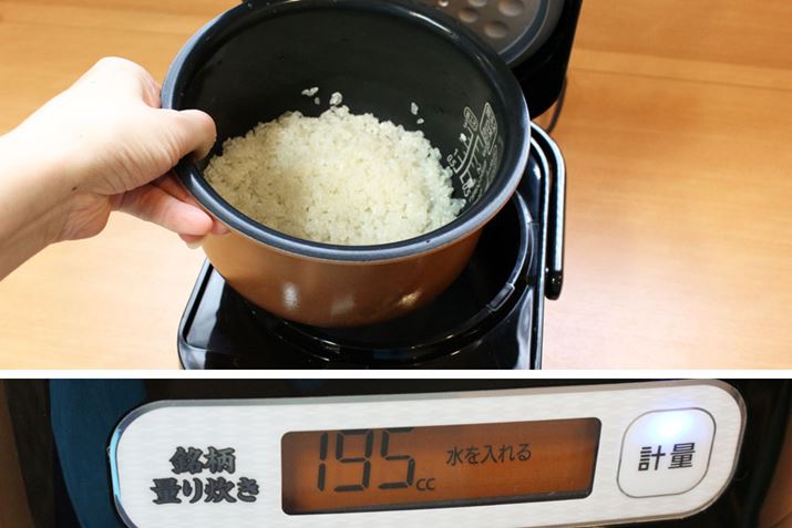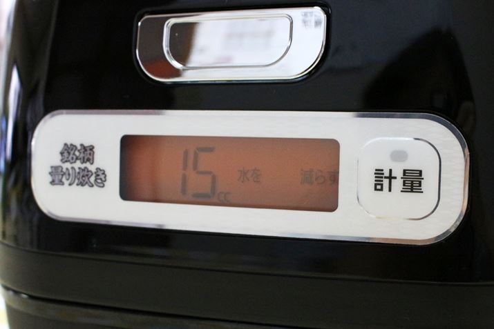 しかし、まだ洗米していません! でも、ご安心を。洗米して水を切った米をセットすると、洗米で吸収された分の水の量を差し引いた数値が表示されます