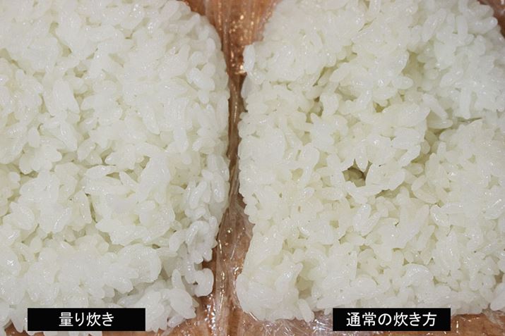 つまり、目盛りで水を量る場合、銘柄にあわせた調整はできないため、その差が食感に現れてしまったようです。この味わいの差は炊きたてだけでなく、お弁当(冷えたごはん)、おにぎり、冷凍ごはんでも顕著に。