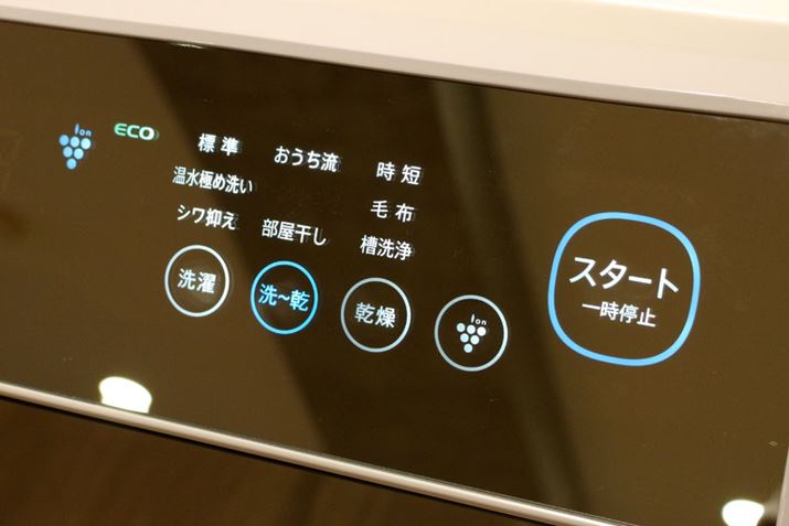 続いては、ドラム式洗濯乾燥機「ES-P110」を見ていきましょう。前面ガラストップを採用し、デザインを大きく変えたES-P110ですが、基本的な性能は従来と同じで、洗濯と乾燥のコースそれぞれに新たなコースが追加されたのが進化点となります。