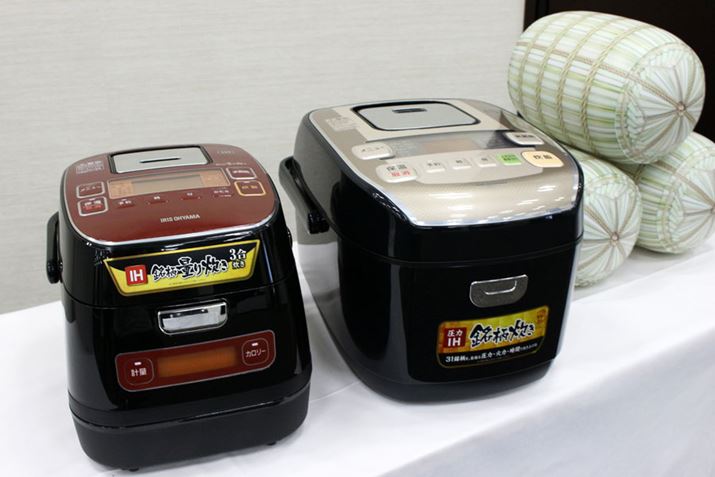 2015年に炊飯器事業に参入した、アイリスオーヤマ。値ごろな価格の5.5合炊きIH炊飯器や、水量を計測してくれる3合炊きIH炊飯器など、お得感のある価格設定とニーズにマッチした機能で順調に売上を伸ばしているといいます。そんなアイリスオーヤマから、同社初の圧力IH炊飯器「銘柄炊き KRC-PA50-B」と、昨年発売し、話題となった水量計測機能を搭載したIH炊飯器の新モデル「銘柄量り炊き KRC-ID30-R」が誕生。食物繊維成分が増える、カロリーがわかるといったユニークな機能が装備された2モデルを、発表会で見てきました!