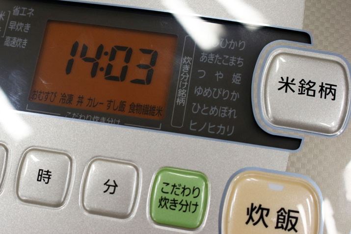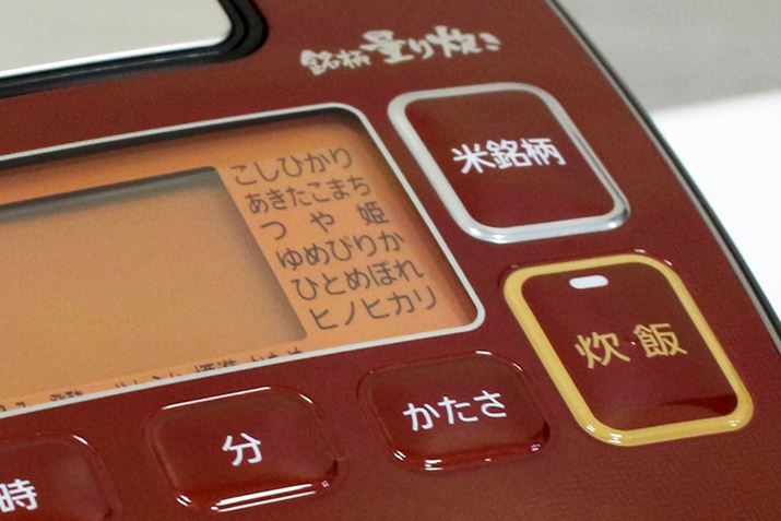 「量り炊き」機能において、もっとも重要となるのは銘柄の指定。表記されている銘柄は6つですが、取扱説明書には「ななつぼしの場合は、ゆめぴりかを選ぶ」といった説明があるので、一般的に流通している銘柄であれば銘柄指定できるはず。新モデルには近年人気の特Aクラスの9銘柄のプログラムも搭載され、計40銘柄に対応できるようになりました