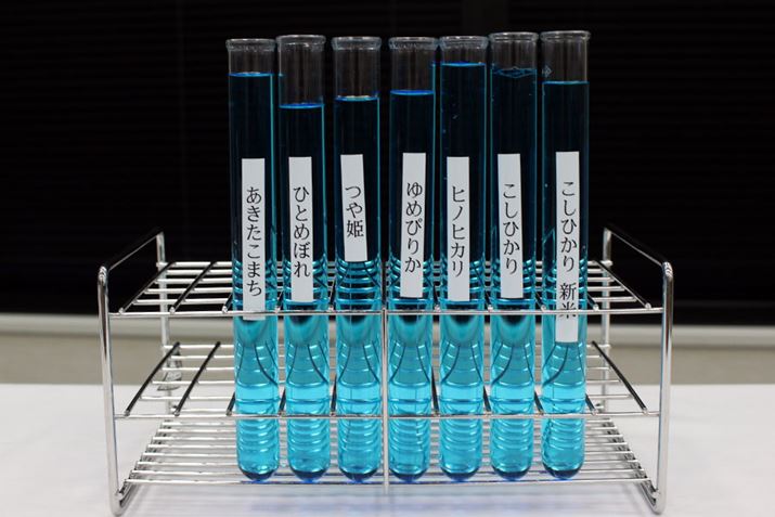 ちなみに、25gの米を炊くのに必要な水の量がこちら! 銘柄でかなり差があることがわかります。1合は約150gなので、実際に1合炊くと、この写真の6倍の水となりますが、「量り炊き」機能のない炊飯器では銘柄ごとに最適な水量がわからないため、すべて同一水量での炊飯しかできません