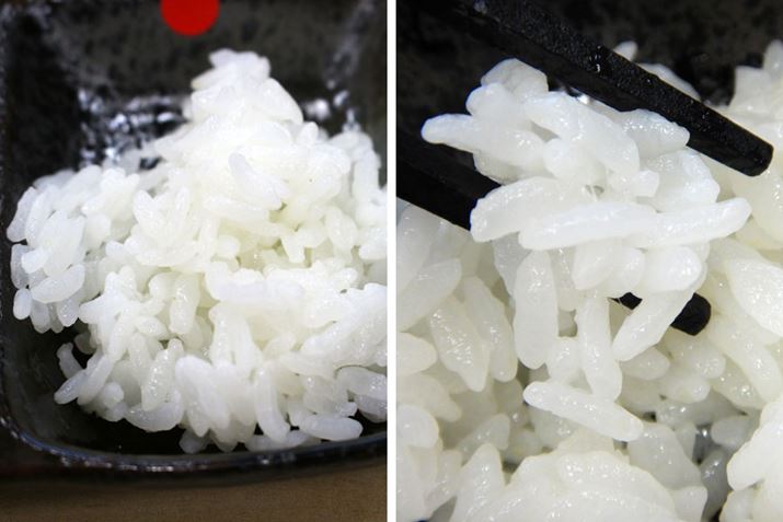 KRC-PA50-Bで炊いたごはんを試食してみました。一見、「銘柄量り炊き KRC-ID30-R」で炊いたごはんと大きな違いはないように思えたのですが、KRC-PA50-Bのほうは米粒と米粒の間に粘りが糸を引くほどで、もちもち感がすごい! 甘みと弾力もしっかりと感じました