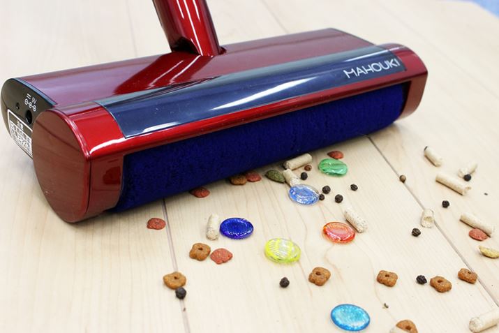 吸引することなく大きなゴミが取れたので「おぉ!」と思ったものの、編集部にマホウキを持ち帰り、別のゴミで検証してみたところ、砂のような微細なゴミを取るのは少々苦手そうな印象を受けました。本体が軽いのでサッと使える扱いやすさは魅力ですが、こぼしてしまった塩や砂糖などの調味料、土埃でザラついた床面をキレイにするのはむずかしそう。また、ケチャップやマヨネーズといった半液体、醤油やお茶などの液体は掃除しないでほしいとのこと。おはじきのようなある程度重さがあるものはマホウキで取り除けたので、大きめのゴミやブラシに絡みやすい綿ゴミを中心に掃除したい人には役立つのではないでしょうか。ただ、用途がかなり限られるので、15,980円という価格(2017年10月6日時点の価格.com最安価格)と利用シーンを考慮して購入を検討したほうがよさそうです。