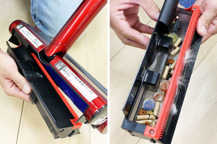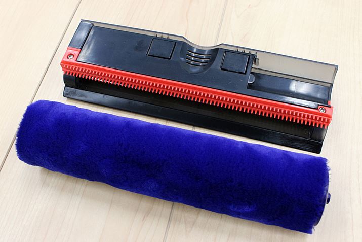 ロールブラシでかき取られたゴミはリフレッシャー(赤い部分)で剥がされ、ダストケースに溜まっていきます。シー・シー・ピーによると、ダストケースがチリトリの役割なのだそう