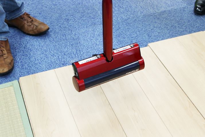 この仕組みでどの程度ゴミが取れるのか検証してみましょう。基本的にマホウキはフローリング向け。毛の長いカーペットや溝が多い畳には適しません。