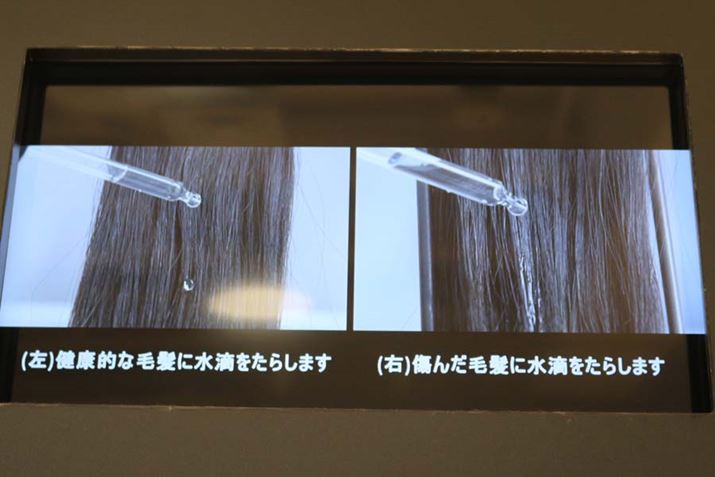 会場には、健康な髪と傷んだ髪の違いを目で見て実感できる展示が用意されていた。「Dyson Supersonic」を使用して、髪に過剰な熱を与えずにすばやく乾かすことのメリットを、目で見て実感することができた。