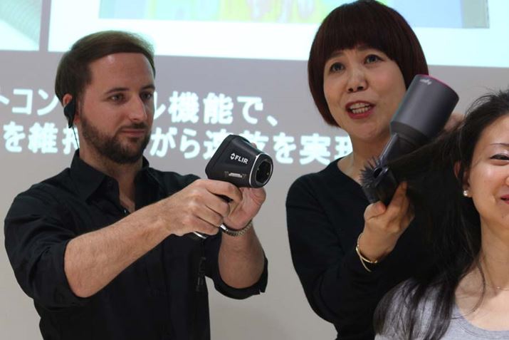 イベントでは、毎秒20回風温を測るという「インテリジェント・ヒートコントロール」のデモンストレーションも行われた。30秒間同じ場所をブローして、ブローし始めとブロー直後の髪表面の温度を測定してみる。