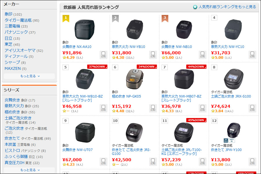 2025年11月18日時点の価格.comの炊飯器 人気売れ筋ランキング