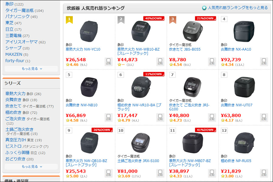 そこそこおいしいごはんが味わえる、手ごろな価格の5.5合炊き炊飯器を価格.comでの人気を参考にしてセレクト。加熱方式により価格帯が違うので、高級モデルに多い圧力IH式の場合、3万円でも十分手ごろな価格だと言えます。