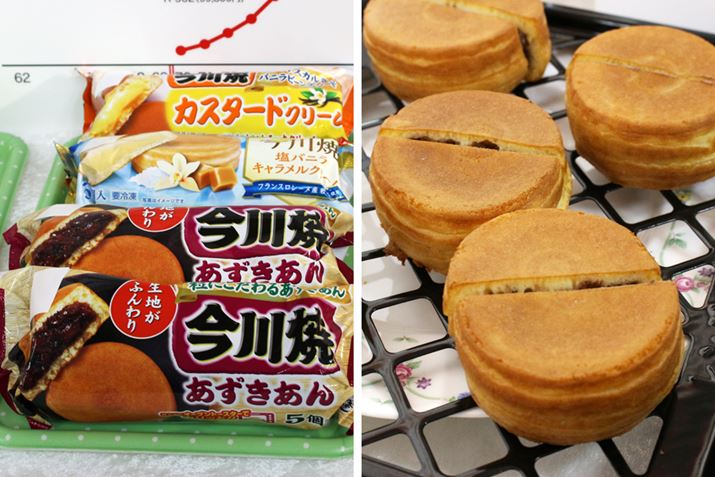 冷凍の今川焼きは、電子レンジであたためると皮がベチャッとしてしまい、一般的なトースターでは表面が焦げて中は冷たいままとなりがち。しかし、ヘルシオ グリエレンジであたためると焼きたてのように表面サックリ、中はホクホクになりました