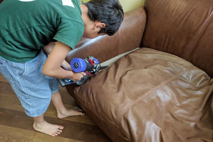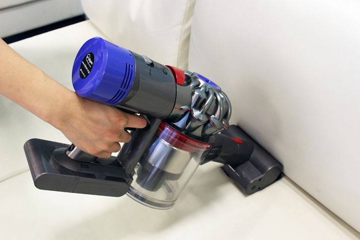 ちょっとルール違反かも!? と思いつつ、子どもが手を入れたりすることもあるので、ソファのすき間も規定の掃除時間2分の間に「V8」で掃除しました