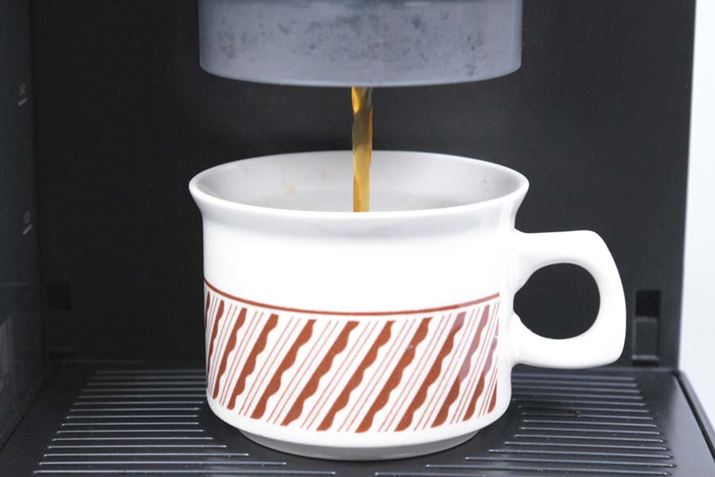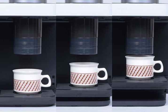 水タンクを本体にセットしたら、コーヒーカップをトレイに置く。コーヒーが飛び散らないよう、トレイの高さを低/中/高の3段階で調節できるのがありがたい。地味ながら実に気のきいた設計だ