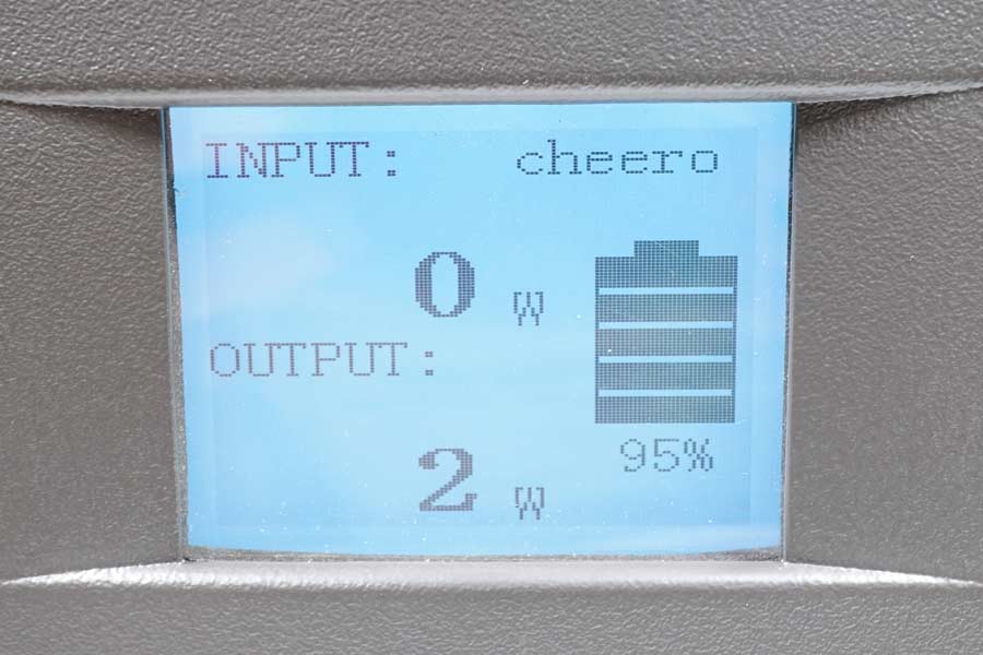 正面には液晶ディスプレイを搭載。給電量や充電量、残容量などが表示されます