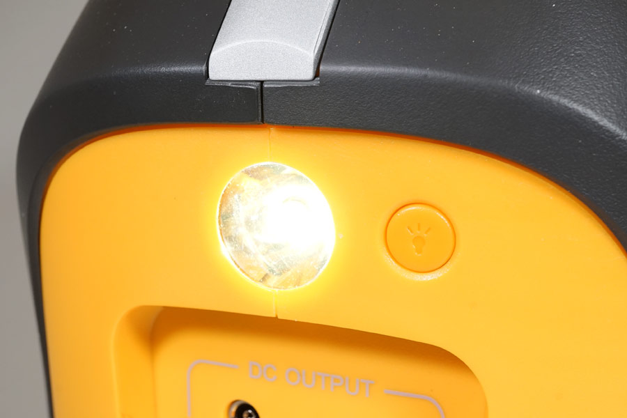 また、スイッチを押すと点灯するLEDライトも搭載。停電時や暗い野外で活躍します