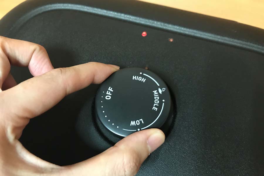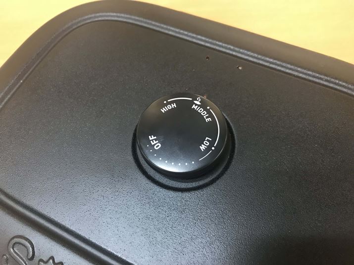 小さい芋なので、温度は「焼き芋マーク」に合わせてみました。「MIDDLE」よりやや「HIGH」寄りなので、だいたい170℃といったところでしょうか