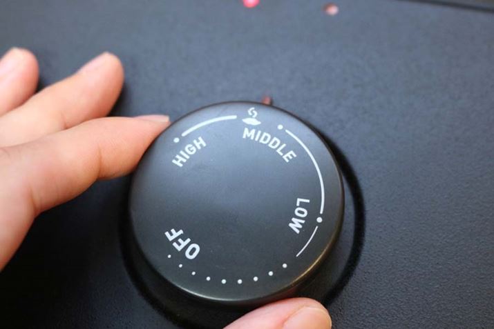 温度は約100〜200℃の間を無段階で調整可能。焼き芋を調理する場合は、「焼き芋マーク」から「HIGH(200℃)」の間の温度にセットします