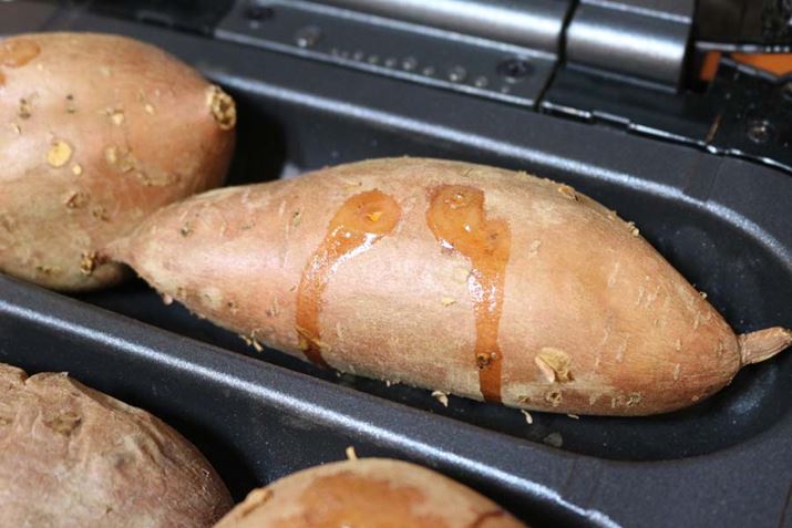 フタをあけると、焼き芋が2本同時に焼ける「焼き芋プレート」が登場。“さつまいも専用”という感じがします