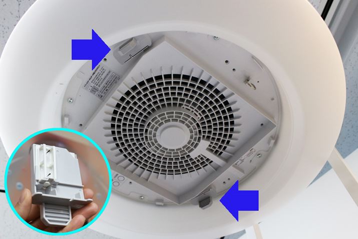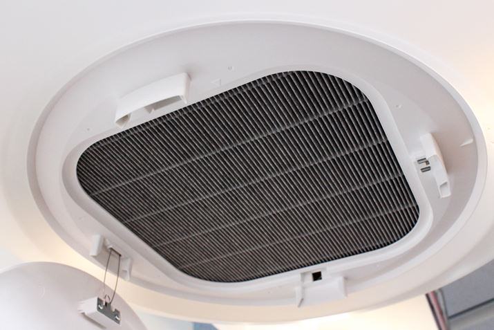 一般的な空気清浄機と同じように、吸い込まれた空気は最初にプレフィルターを通過。ここで大きめのホコリがブロックされるので、内部に侵入することはないといいます。プレフィルターは取り外して水洗いも可能。普段は、気になった時に掃除機などでプレフィルターに付いたホコリを取り除けばOKです