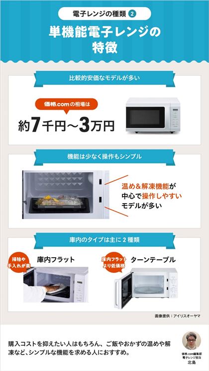 シンプルな温め機能のみで価格の安い「単機能電子レンジ」