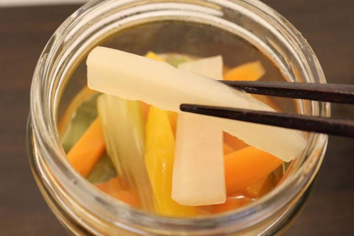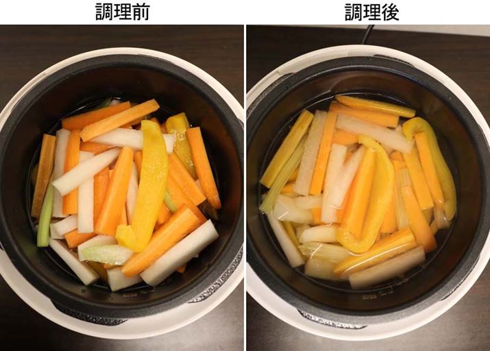 通常、ピクルスは2日くらい漬けてやっと中まで味がしみるのですが、「SP-D131」を使えばあっという間に甘酢がじゅわっとしみたピクルスが完成