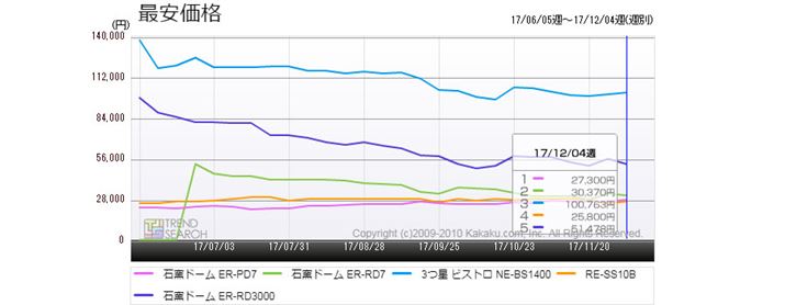図6:「3つ星 ビストロ」シリーズ 3モデルの最安価格推移(過去6か月)