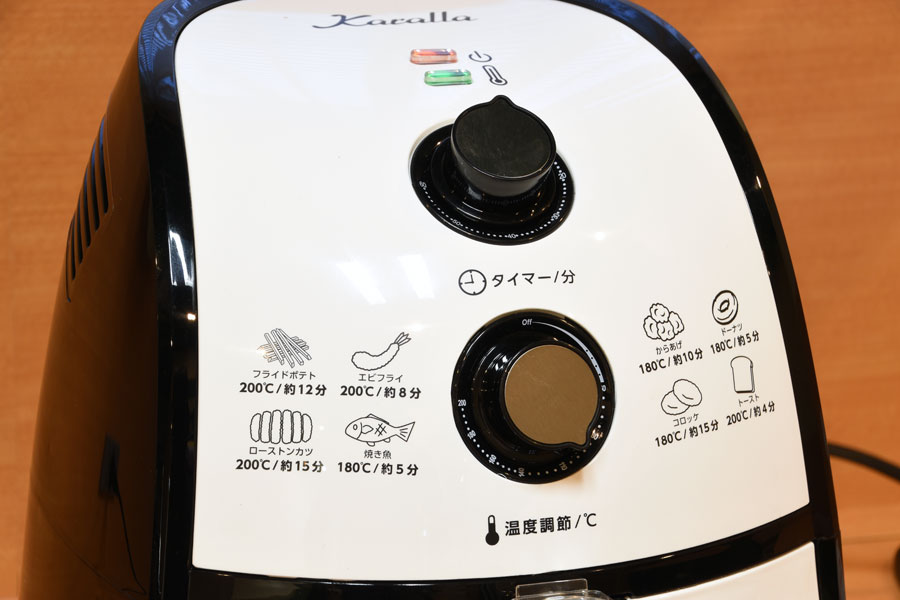 また、「カラーラ」は2つのアナログなダイヤルを回して調理するシンプル設計で、料理ベタな人にとっては使い勝手がよい。お手入れは、バスケットパンとバスケットを中性洗剤で洗って乾かすだけ。これらは食器洗浄器でも洗えるのがうれしい。