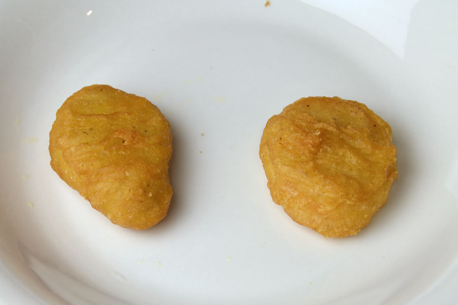 次に、同じくマクドナルドの「チキンマックナゲット」を調理。タイ産の鶏肉を使ったチキンナゲットは外はカリッと、中はジュワッとジューシーな味わいが楽しめる。ぜひ、この食感が復活してほしい!