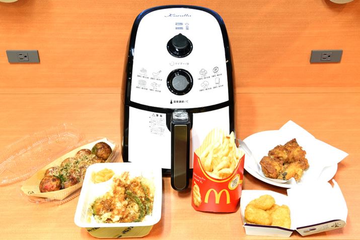 冷めたファストフードは、電子レンジで温めてもいいが、やはり食感や味わいはでき立て時よりはだいぶ落ちてしまう。そこで、でき立ての味わいを復活させられるというノンオイルフライヤー「カラーラ」の登場というわけだ。早速、実験してみよう!