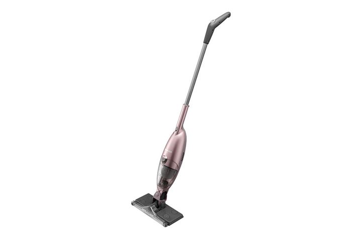 ヘッドに市販のワイパーシートを装着することで、フローリングのゴミを吸い込みながら、同時に拭き掃除も行えるコードレスワイパー掃除機。本機1台でゴミの吸引と拭き掃除をまかなえるが特徴。先端部の「吸う・拭く ラクラクヘッド」は、ワイパーシートを簡単に装着でき、フローリングワイパーでは拭き取ることが難しい大きなホコリを、吸込みノズルで吸いながら、フローリングに残るザラつきをワイパーシートで拭き取る。