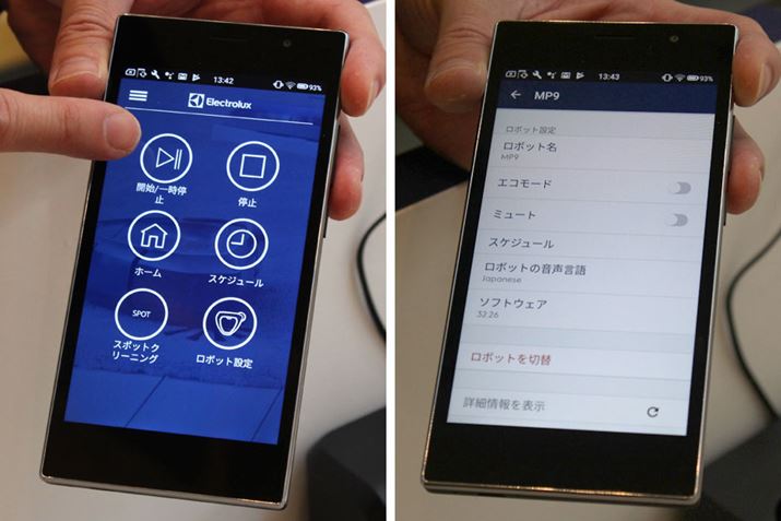 もうひとつ、PUREi9の特徴として挙げられるのが、毎秒10Lの空気を吸い込むという高い吸引力を備えていること。エレクトロラックス・ジャパンの長岡社長は「いくらロボット掃除機とはいえ、掃除性能として大事な吸引力には妥協したくなかった」とコメント。このあたりにも“先駆者としてのこだわり”が感じられます。掃除モードは通常の「オート」のほか、1m以内のエリアを集中的に掃除する「スポット」も搭載しています。