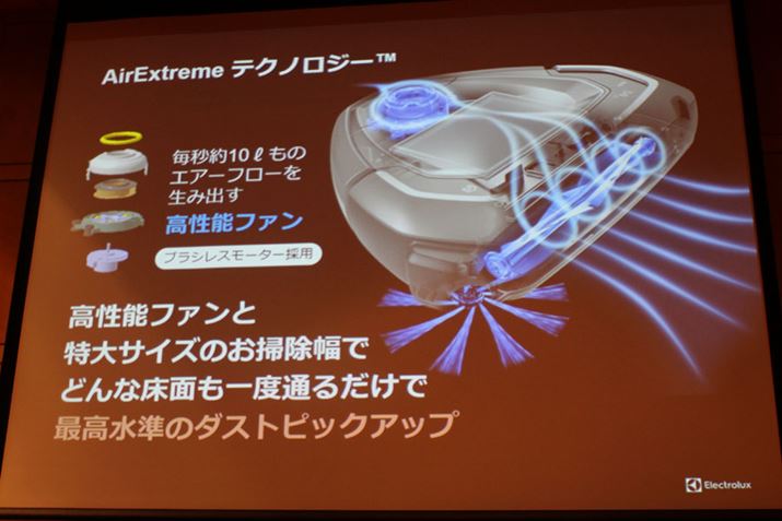 そんな同社が、トリロバイト以来のロボット掃除機として開発したのが、今回のPUREi9なのです。エレクトロラックス・ジャパンの長岡社長は、このタイミングでの市場参入となった理由を「正直、先駆者としての意地もありつつ……」と前置きしながら、「充電機能を搭載し、十分な掃除性能を実現できるようになったため」と説明しました。